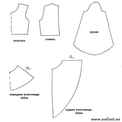 Платье. Подобрать подходящие выкройки, ориентируясь на приведенную схему выкроек: