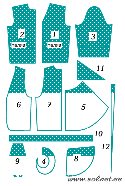 Потребуется базовая выкройка блузы, юбки и жилета.