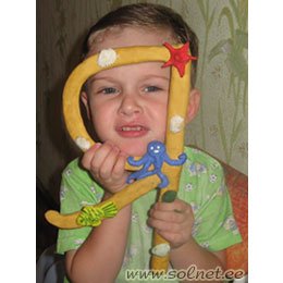 голосов: 156 Георгий «Вот что сделал я!» Буква «Я» сделана из соленого теста, раскрашена гуашью, обклеена ракушками. Выбрана именно эта буква, потому что хочу применить ее в качестве рамочки для фото.