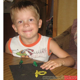 голосов: 80 Саша «Вот какая у меня буква „Р-р-р“ получилась!» Буква вылеплена из пластилина на бархатной бумаге. Выбрана именно эта буква, потому что я недавно научился её выговаривать.
