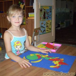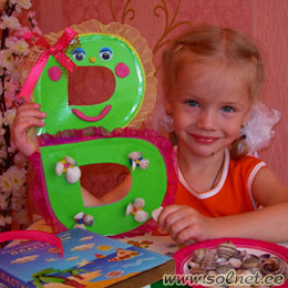 сделана из бумаги, на нее наклеены картинки на «Д» (дети, девочка, диван...). Выбрана именно эта буква, потому что какую же ещё букву может делать Дегтярёва Даша?