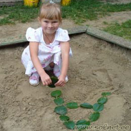 собрана в песочнице из листьев кустарника. Выбрана именно эта буква, потому что она похожа на крышу нашего дома.