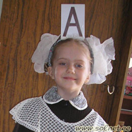 голосов: 73 Изабелла «Буква „А“» Буква нарисована на бумаге прикреплена к ободку. Выбрана именно эта буква, потому что она была сделана для роли на школьном празднике азбуки.