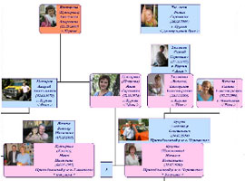 А вообще мы собрали 5 поколений родственников, всего - 89 персон: 45 мужчин и 44 женщины; средний возраст 35,8 лет; средняя продолжительность жизни 62,2 г.; среднее число детей в семьях – 2; самые распространенные имена Александр и Сергей, самые редкие – Ермил, Софья Елизавета. Насть в дереве – 3.