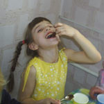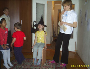 они получили чудесное блюдо - "дождевых червей в грязи" (шоколадный пудинг с желатиновыми червями), самое смешное, что одна девочка так и не смогла заставить себя съесть червяка.