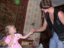 Пока дети за столом, папа переодевается в пирата (костюм прост: платок на голову, жилетка на тело, перевязать глаз и раскрасить лицо).