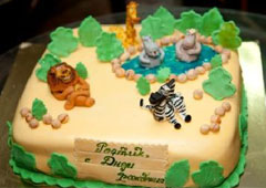 Все тосты и пожелания на камеру снимали дядя Ростика - Саша и папа Ростика. Конечно, позже просматривать видео было интересно. Торт, который делали специально на заказ, пришлось выносить два раза, так как было две разные свечки, которые вставляли по очереди, да и первый раз в присутствии фотографа, чтобы он заснял на фото.