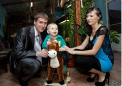 Тут неожиданно в 14:30,а не в 15:00, как предполагалось, приехали первые гости, это были родственники с маминой стороны. Бабушка Алла с дедушкой Олегом подарили лошадку; двоюродная бабушка Ира, двоюродный дедушка Сережа и дядя Сережа - большую машину грузовик. Прабабушки Тоня и Света - денежку. Мама быстро побежала переодевать изменника в новый красивый костюмчик и переодеваться в платье. Потом приехали мамина двоюродная сестра Лена с мужем Сергеем, их дочь Ксюша (они подарили зимние кожаные сапожки) и мамина тетя Саша с мужем Витей (они принесли Ростику набор посуды для еды и кофточку). Гости рассматривали плакаты и ожидали застолье, но не все еще собрались, да и на стол мама с подругой доносила тарелки с едой. Тут подоспел фотограф, которого на 2,5 часа наняли мама с папой. Пока фотограф раскладывался, потянулись и остальные гости: тетя Наташа с мужем Веней и сыном Кирилом (они принесли грузовик, но меньшего размера), прадедушка Витя (принес деньги Ростику) и дяди Витя и Саша. Итого детей вместе с Ростиком было 3. Ростик самый маленький, Кириллу 3 годика и Ксюша 7 лет.
