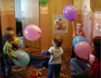 - игры с воздушными шариками (надувание их малышами с помощью специального насоса, закидывание их в обруч, просто кидание...);