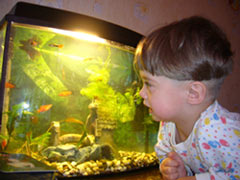 Я сказала ему, чтобы закрыл глаза и отнесла его к аквариуму. Открыл глаза и опять "Рыбки?" А потом: