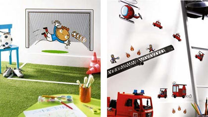 Виниловые наклейки бывают “девочковой” и “мальчиковой” тематики. Обратите внимание, что с помощью таких наклеек на стену можно зонировать детскую комнату, выделив зону игр.