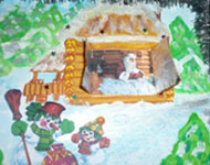 Перед тем как отправиться в путь, Дедушка Мороз в своем доме читает письма ребят, а снеговики готовят мешок с подарками.