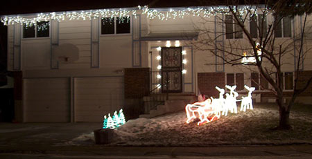 Если поздним вечером пройтись по улице, может показаться, что попал в сказочный город! Все дома светятся разноцветными огоньками, деревья и кустики также украшены огоньками и блестящими гирляндами. А у входа... стоят олени, запряженные в сани, а в санях - добрый Санта Клаус.