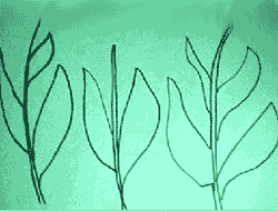 На зелёной бумаге карандашом нарисуем стебли и листья. |