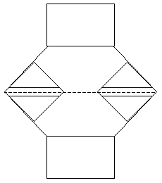 4. Переверните квадрат. Теперь пару противоположных ромбов разогните в прямоугольники. Согните фигуру пополам.