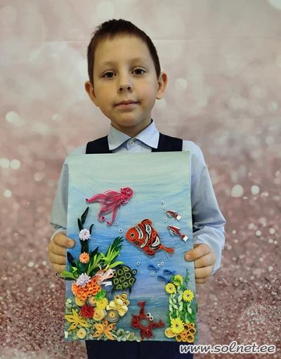 Приклеить сердцевинку на плотную бумагу, вокруг неё разместить роллы в форме «капель». Тона должны гармонировать друг с другом, здесь важно не переборщить с оттенками.